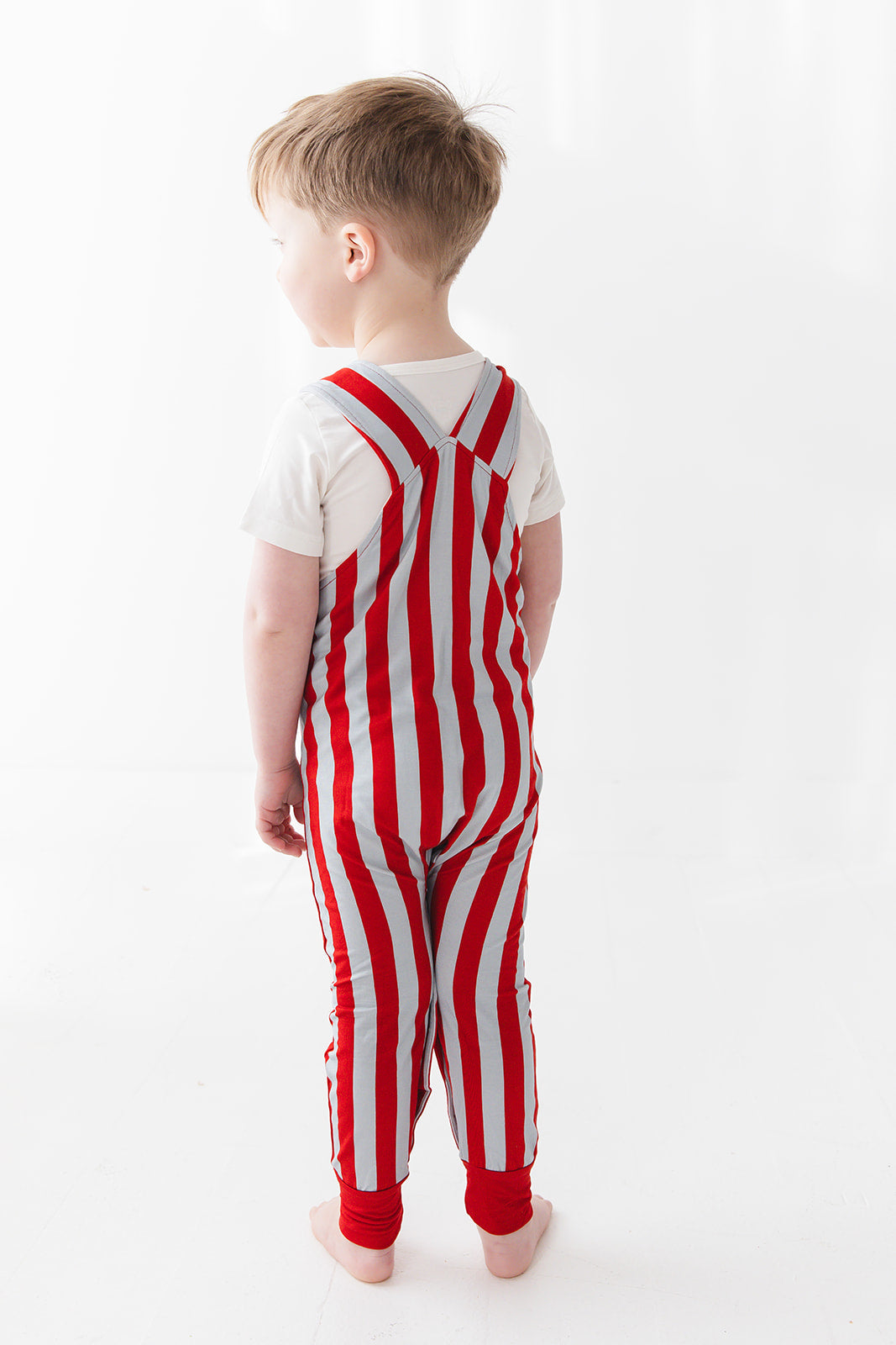Red & Gray Stripe Overall Set