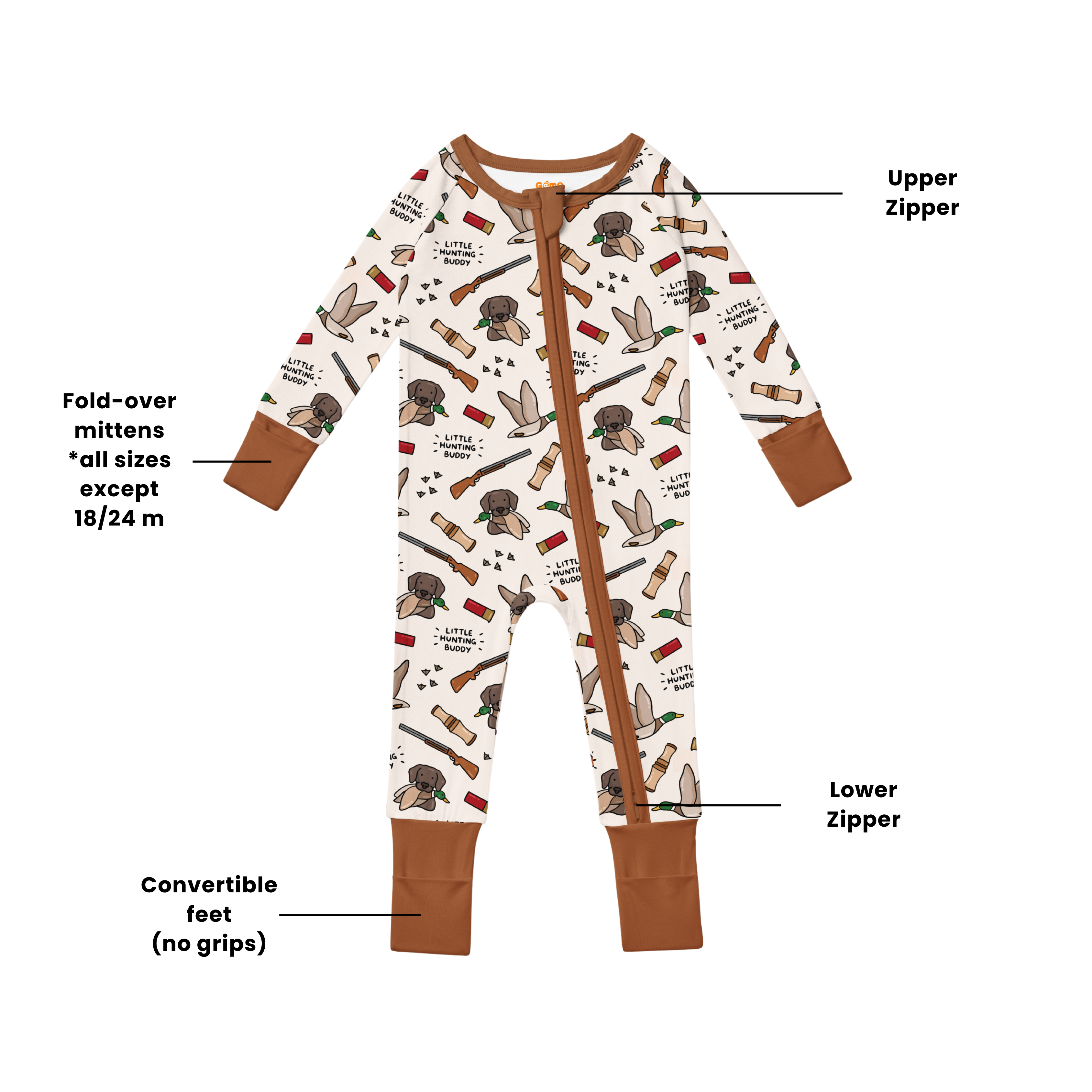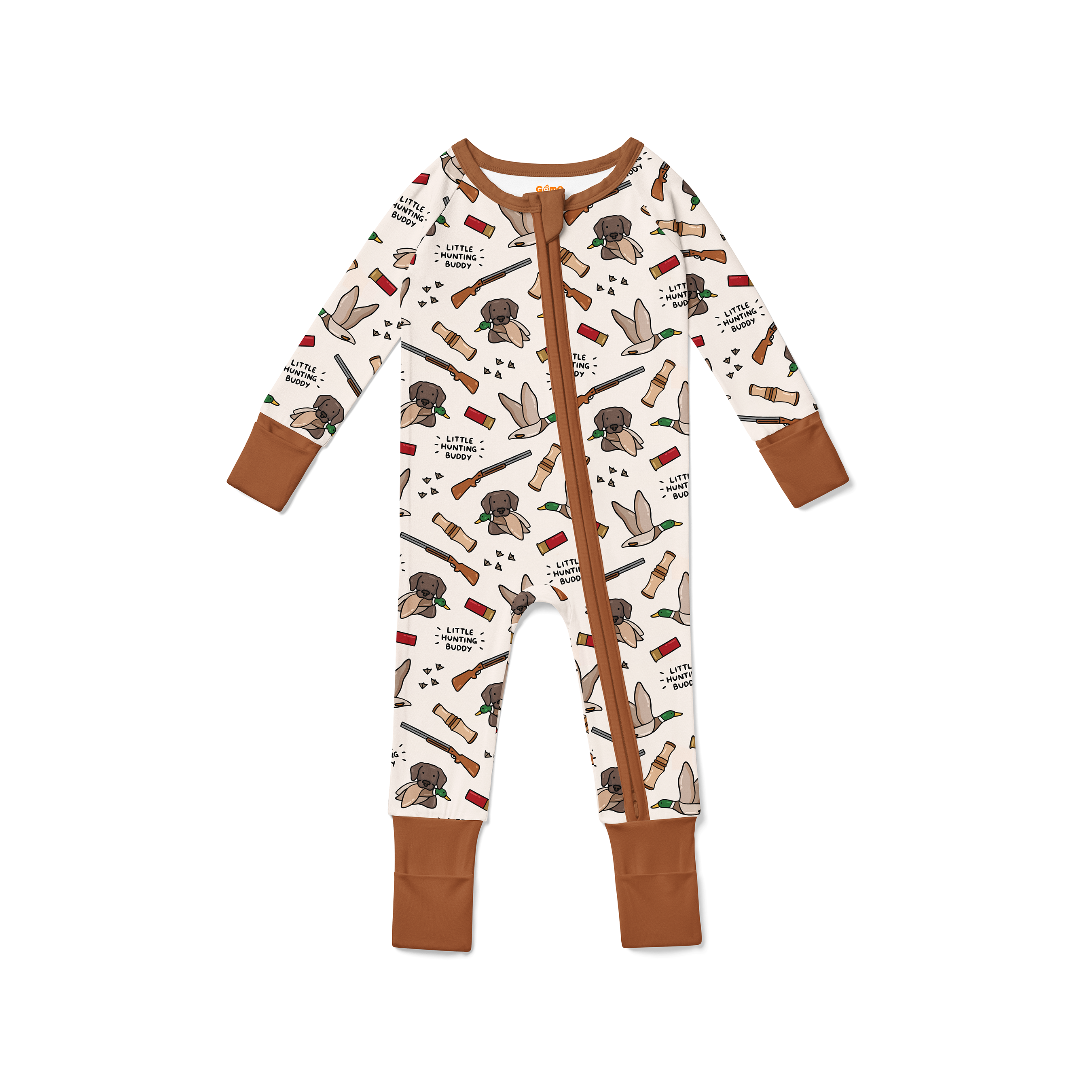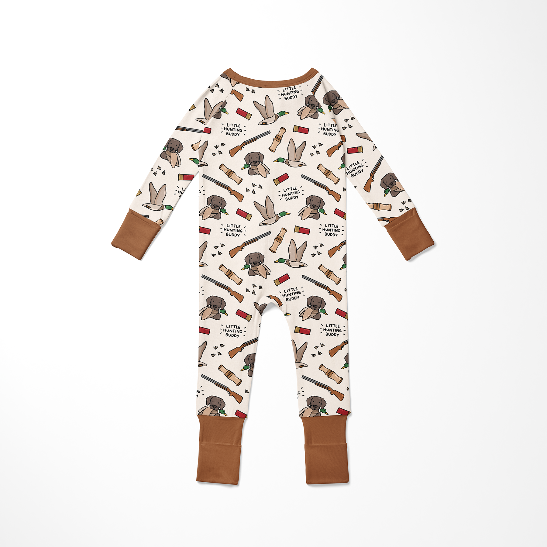 ✔ Duck-inspired print with playful “Little Duck Hunting Buddy” details