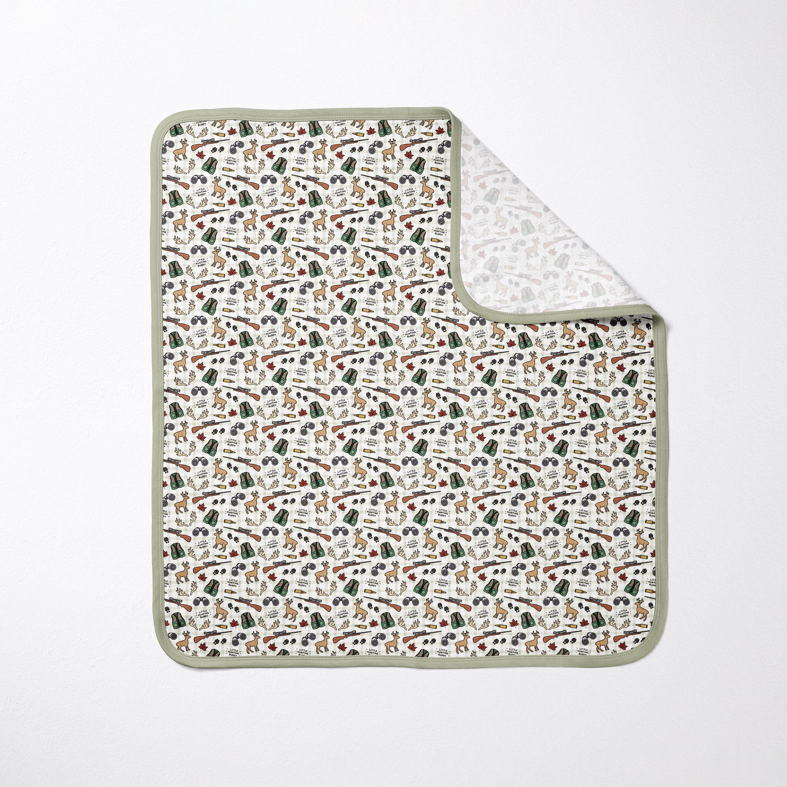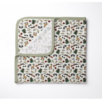 Our Little Deer Hunting Buddy bamboo swaddle blanket is made from the same ultra-soft, stretchy bamboo fabric you love from our pajamas. Lightweight and breathable, this swaddle features a charming deer-inspired print that brings a warm, outdoorsy feel to everyday snuggles.