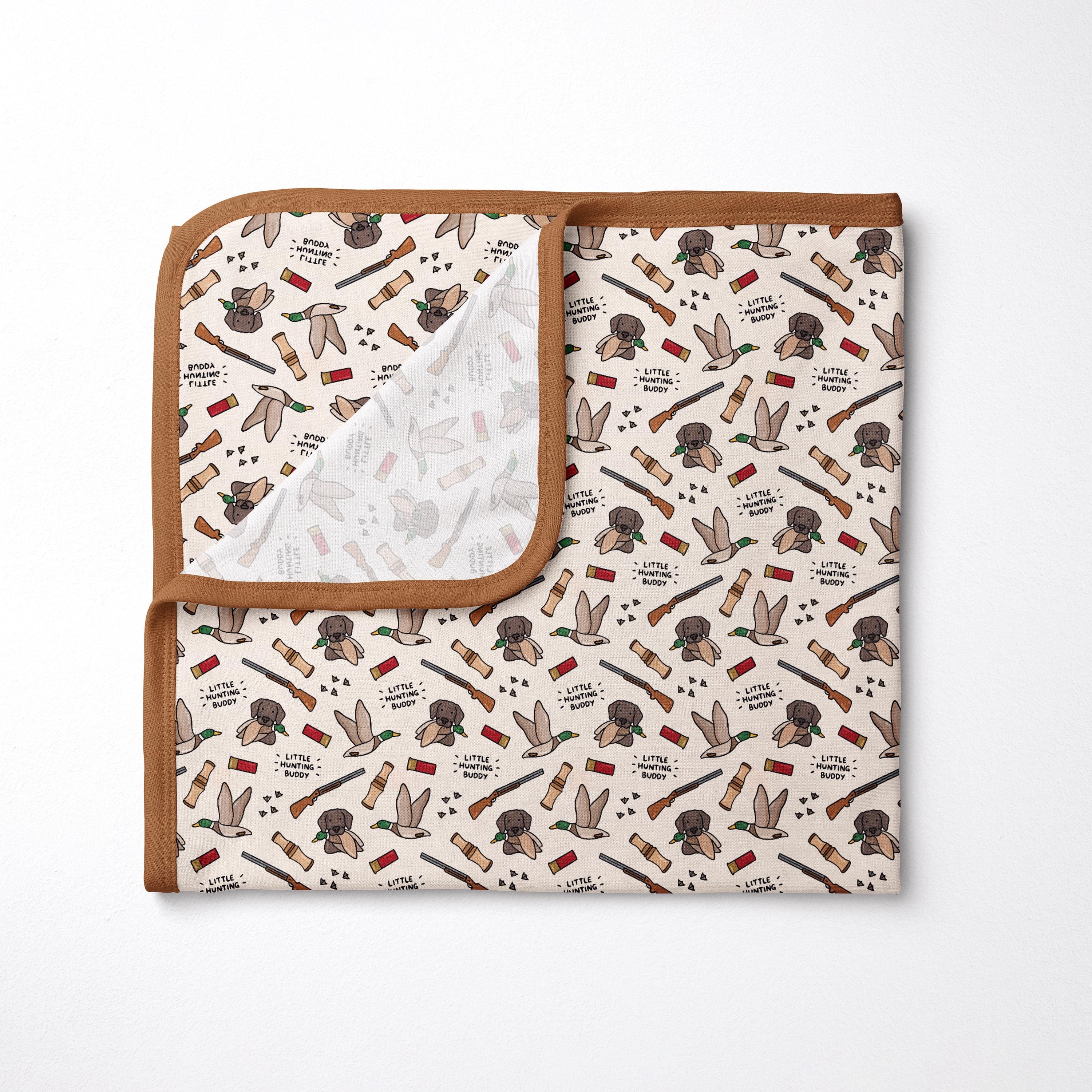 Our Little Duck Hunting Buddy bamboo swaddle blanket is made from the same ultra-soft, stretchy bamboo fabric you love from our pajamas. Lightweight and breathable, this swaddle features a charming duck-inspired print that brings a warm, outdoorsy feel to everyday snuggles.