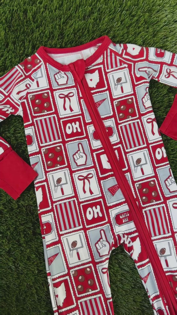 Bedtime meets scarlet and gray! Our Columbus Stamps bamboo zip pajamas are buttery-soft, breathable, and perfect for cozy nights after long game days.